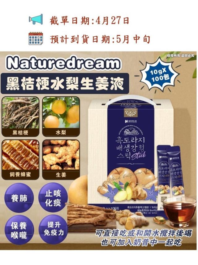 韓國Naturedream 黑桔梗水梨生薑液 (1盒100包) (只限批發會員下單)