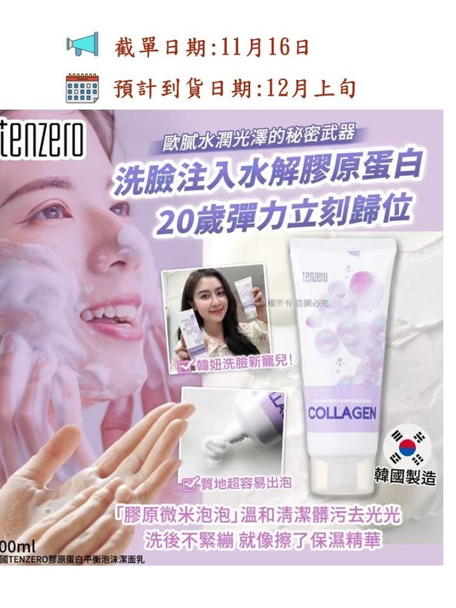韓國TENZERO膠原蛋白平衡泡沫潔面乳100ml (2支/套)