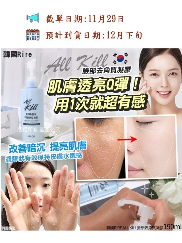 韓國RIRE ALL KILL臉部去角質凝膠190ml
