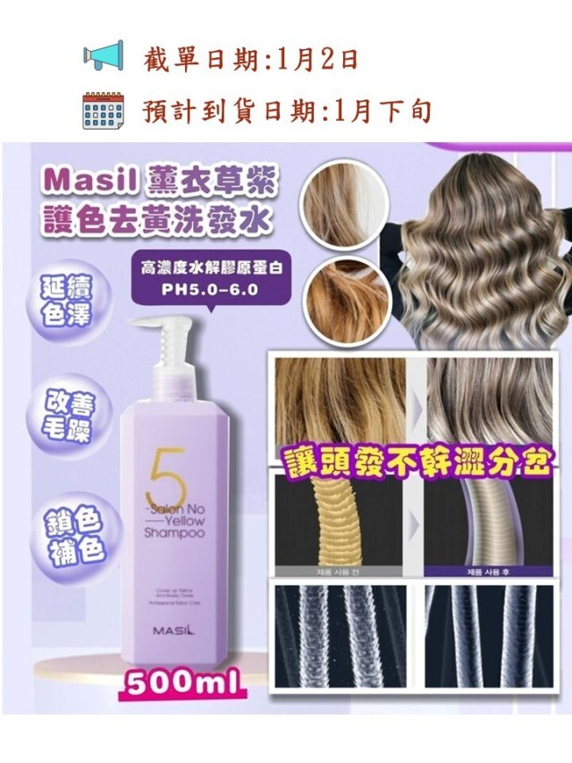 韓國 Masil 薰衣草紫 護色去黃洗發水500ml
