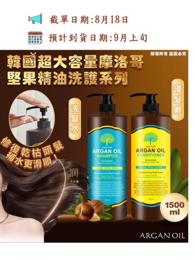 韓國🇰🇷CHAR CHAR超大容量摩洛哥堅果精油洗護系列1500ml
