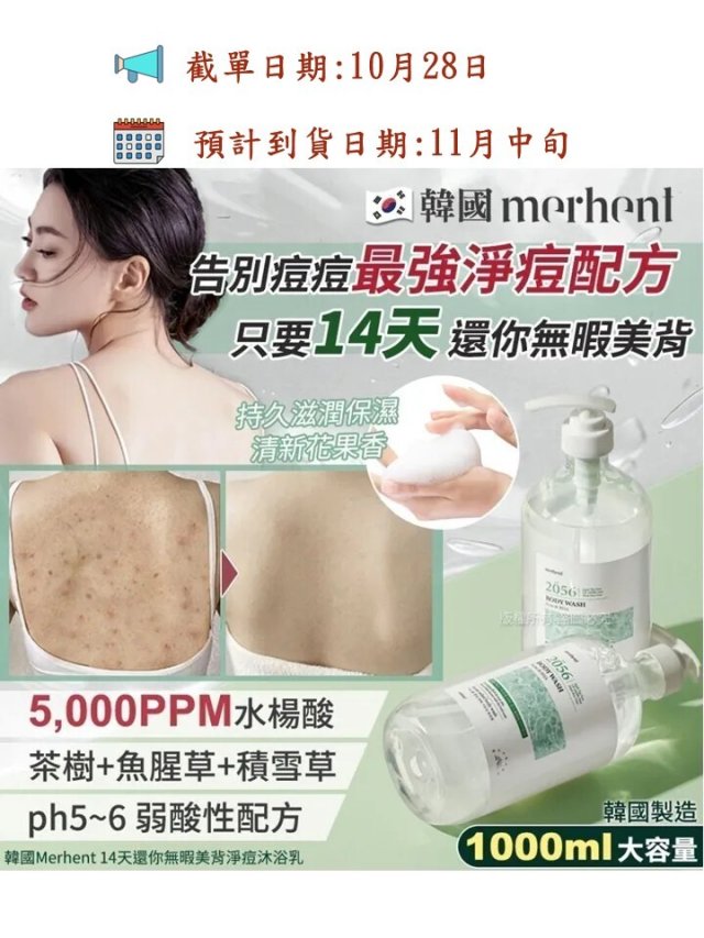 韓國🇰🇷Merhent 14天還你無暇美背淨痘沐浴乳1000ml (2056)