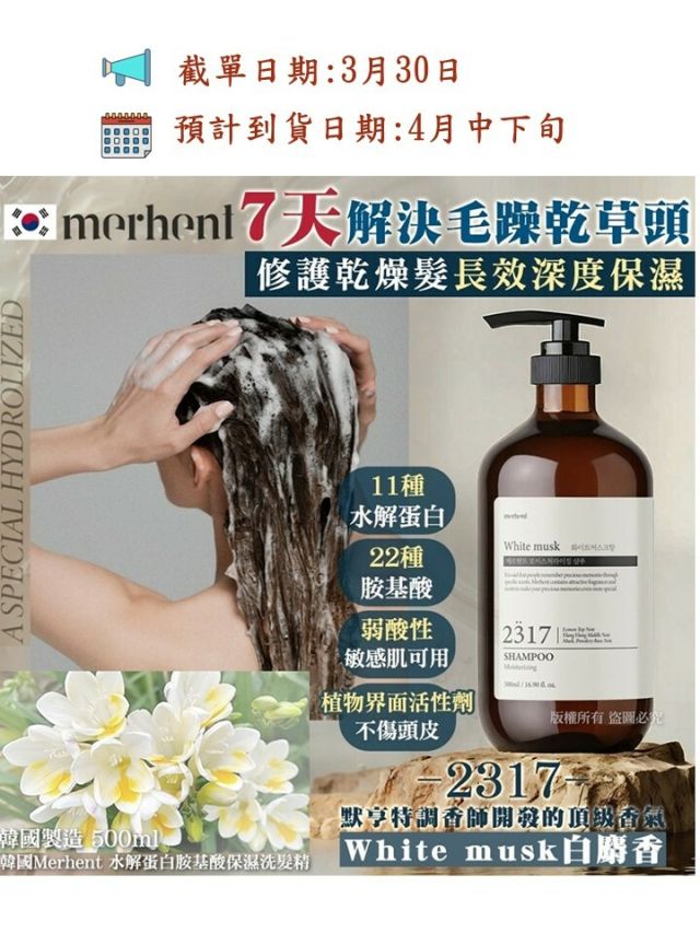 韓國 Merhent 8種分子玻尿酸沐浴乳 1500ml (1523 & 1524)