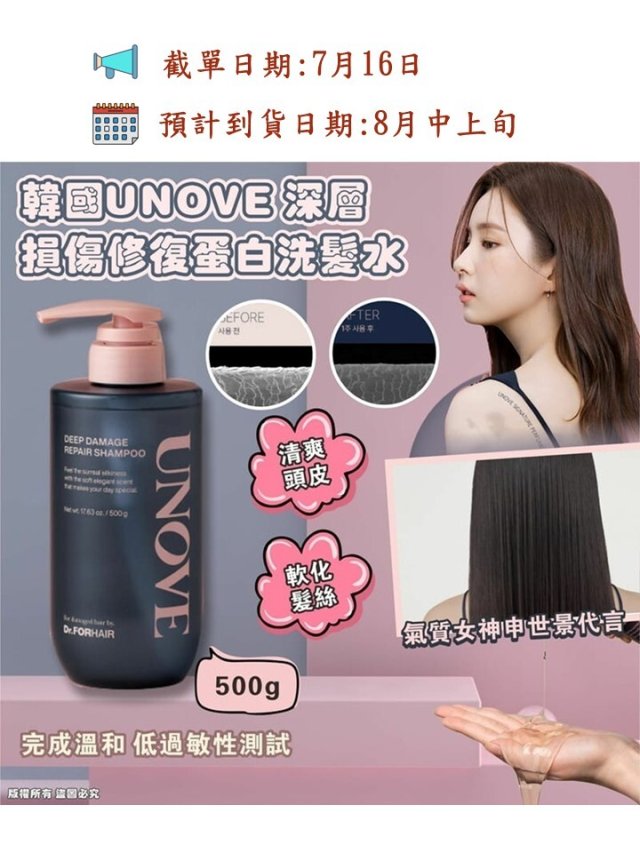 韓國 UNOVE深層損傷修復蛋白洗髮水500g