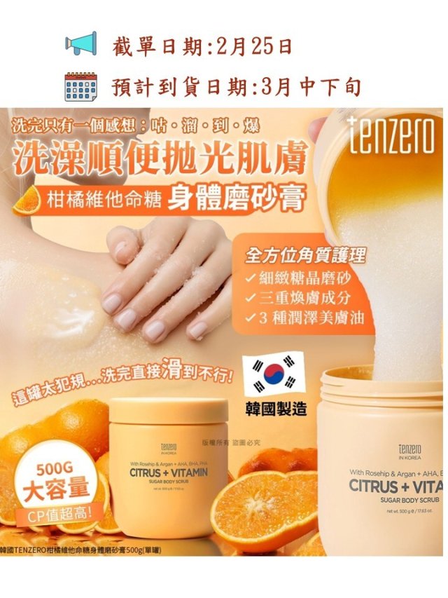 韓國TENZERO柑橘維他命糖身體磨砂膏500g