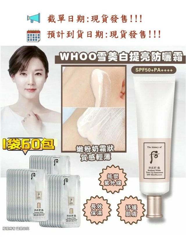 Whoo 后拱辰享活膚清爽防曬霜小樣 (120片/袋)
