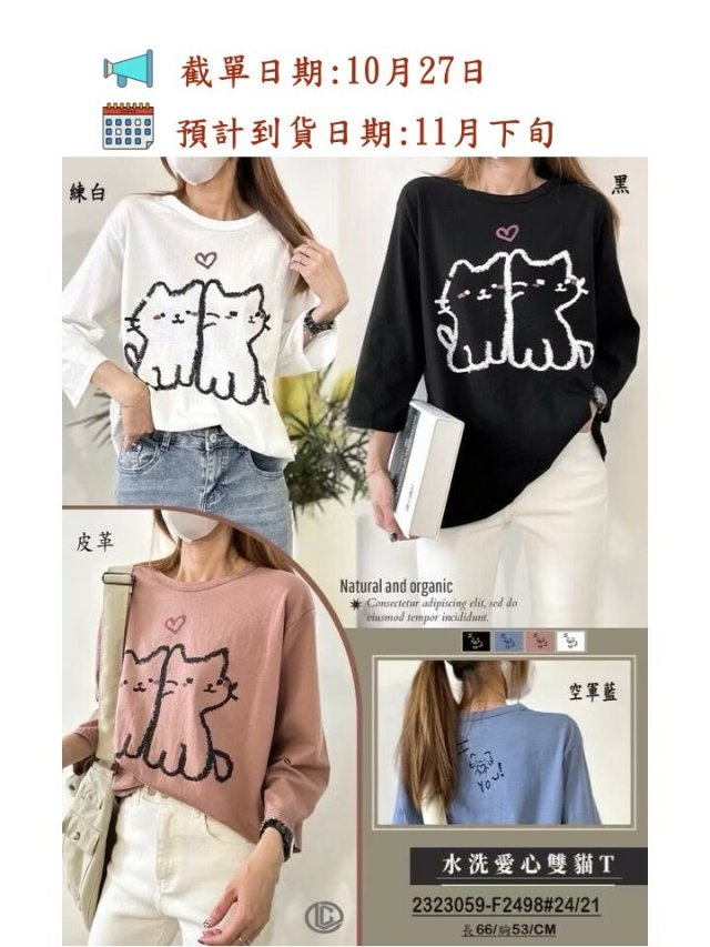 水洗愛心雙貓T上衣