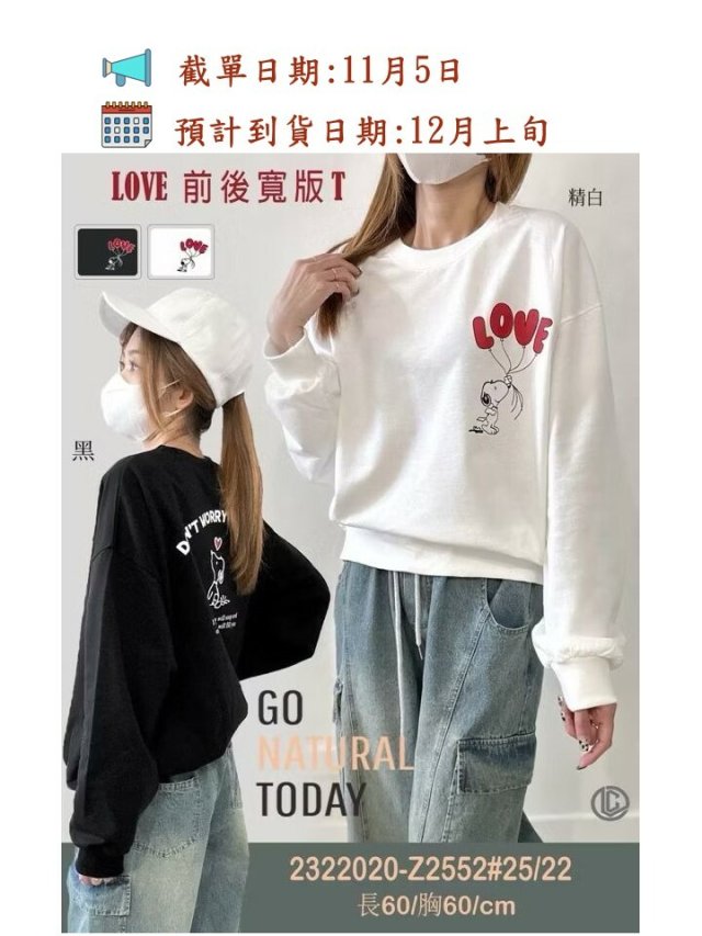 LOVE 前後史奴寬版T長袖上衣