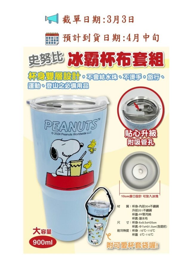 台灣 史努比~冰霸杯布套組