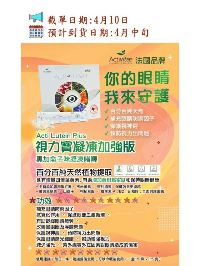 Activitae 視力寶凝凍加強版 Acti Lutein Plus - 黑加侖子味凝凍啫喱 (一盒15條)