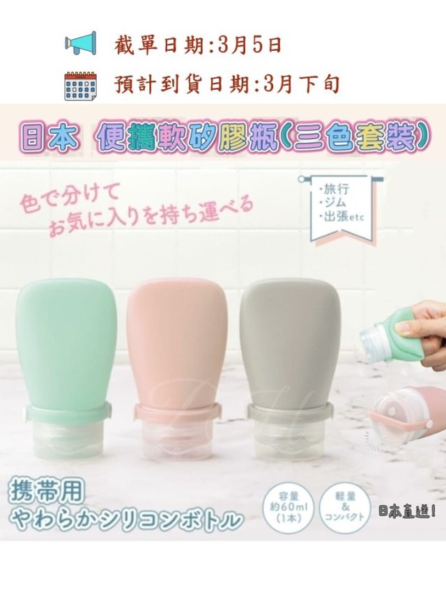 日本 便攜柔軟矽膠瓶(三色套裝)