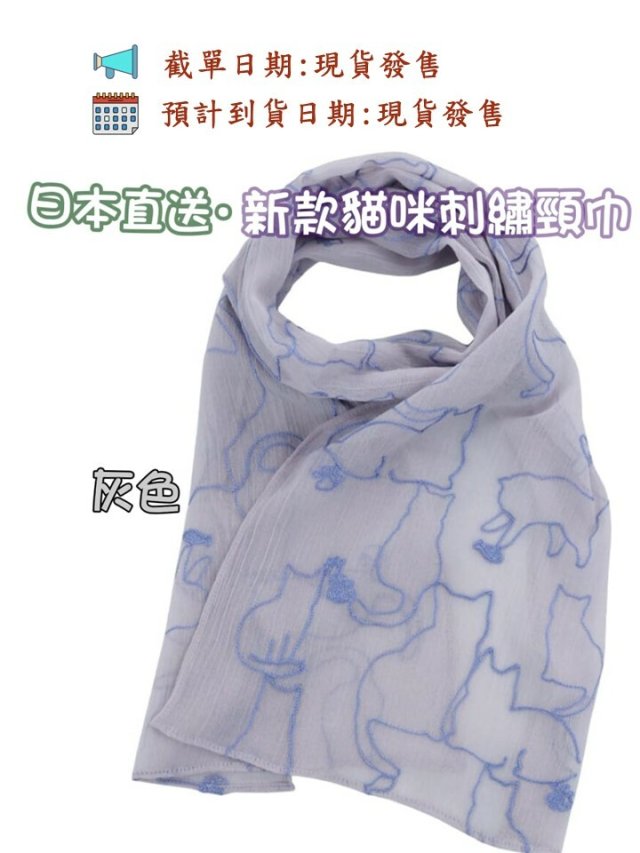 日本新款貓咪刺繡頸巾(灰色)
