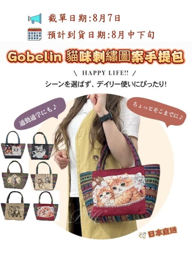 日本 Gobelin貓咪刺繡圖案手提包