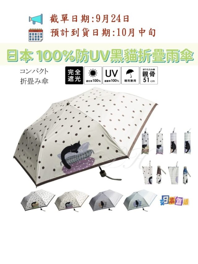 日本 100%防UV 黑貓折疊雨傘