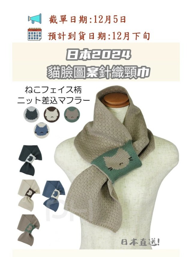 日本2024 貓臉圖案針織頸巾