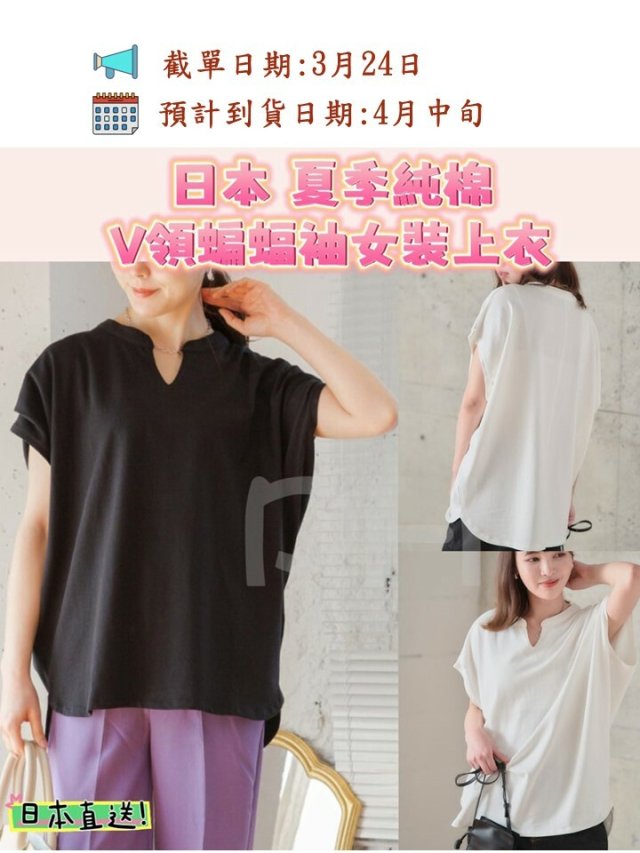 日本 夏季純棉V領蝙蝠袖女裝上衣