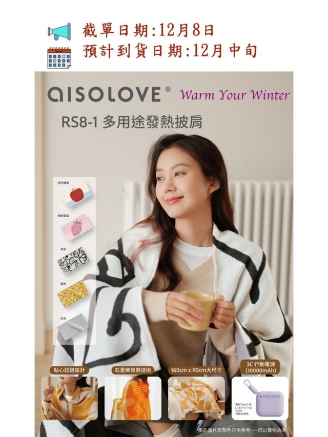 AISOLOVE RS8-1 多用途發熱披肩(附送獨立CCC+CE認證行動電源)