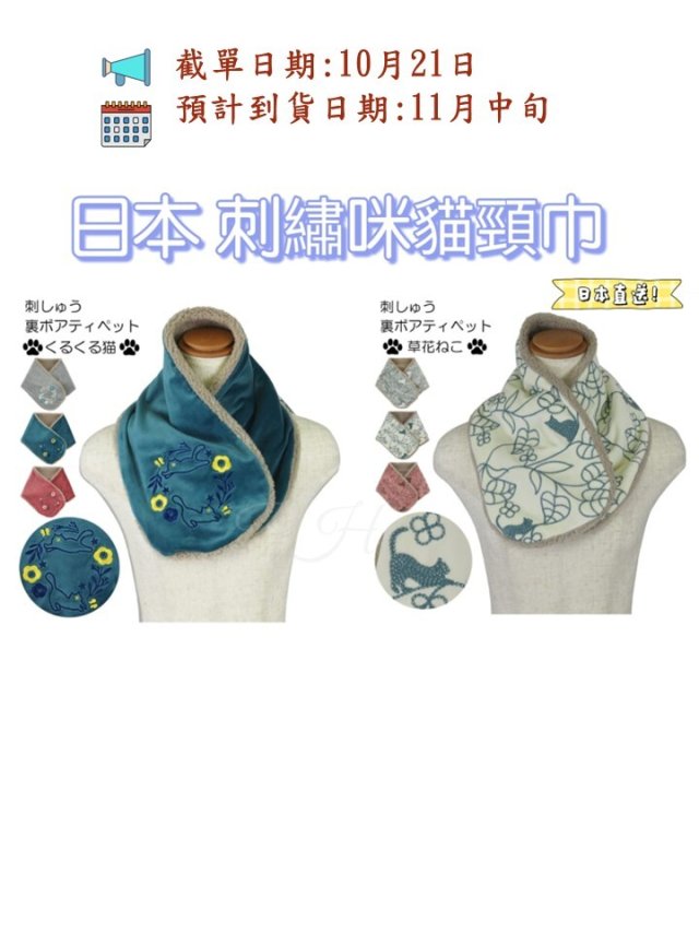日本 刺繡貓咪頸巾