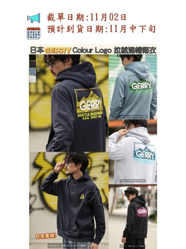 日本 GERRY Colour logo拉絨連帽衛衣
