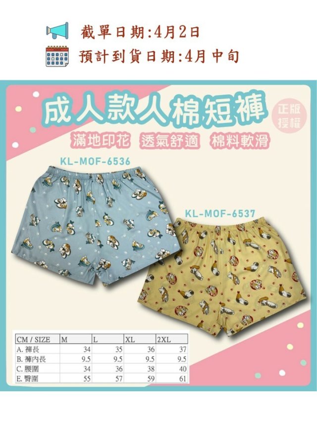 Mofusand 成人款全棉短褲