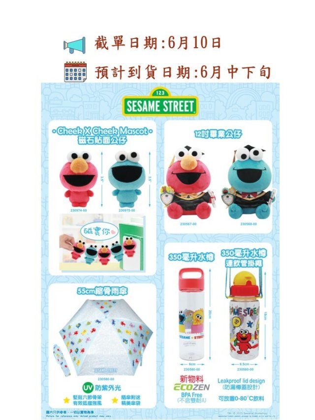 超可愛芝麻街公仔/雨傘/水樽系列