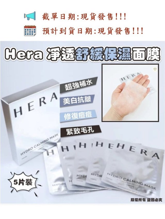 韓國國民品牌Hera 淨透舒緩保濕面膜 5片裝