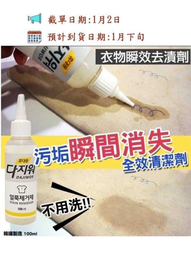 韓國製造無須水洗瞬效去漬劑100ml (1套2支)