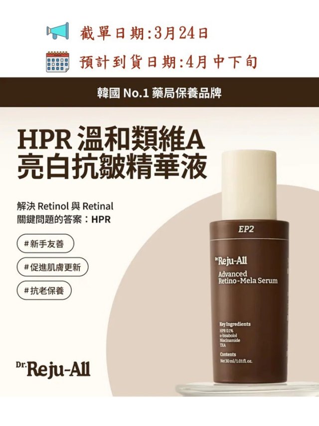 Dr.Reju-All 高效HPR亮白抗皺精華液 - 30ml
