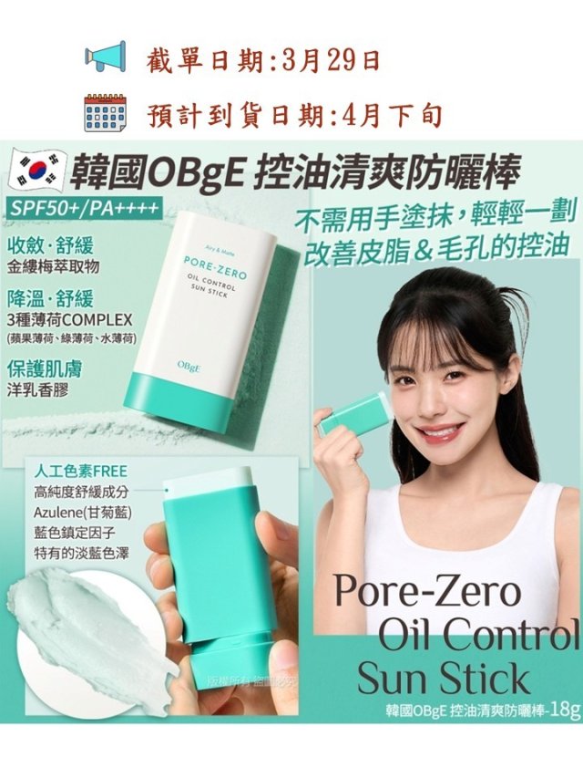 OBgE PORE ZERO Oil Control Sun Stick 防曬控油棒18g