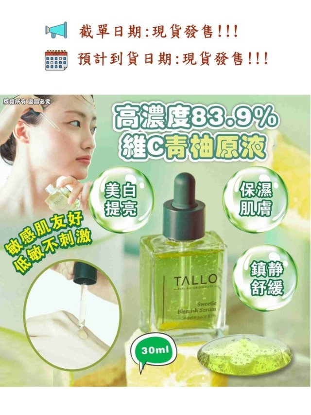 TALLO 青柚高濃度83.9%維他命C美白淡斑鎮靜純素精華液
