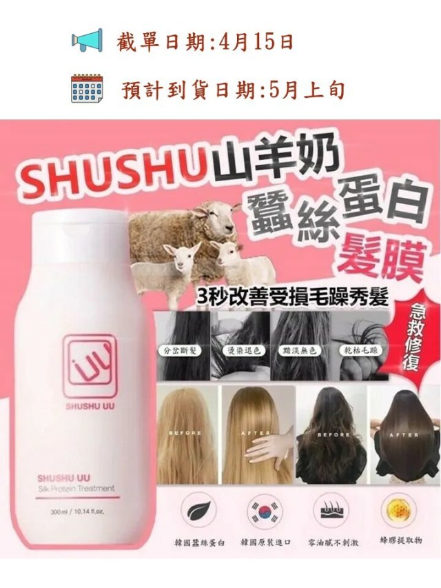 SHUSHU UU山羊奶蠶絲蛋白修復髮膜300ml