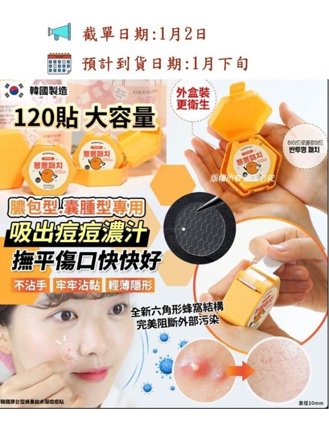 韓國 膠台型蜂巢紋水凝痘痘貼 120貼