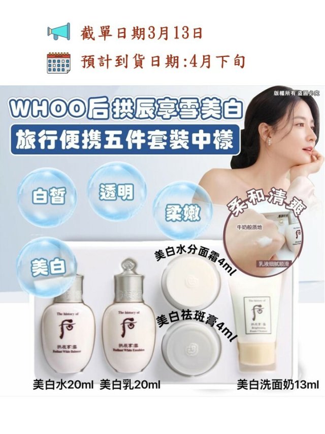 WHOO 后拱辰享雪美白旅行便攜五件套裝