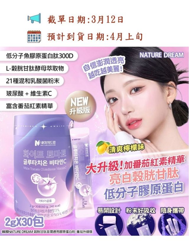 NATURE DREAM 穀胱甘肽透亮膠原蛋白益生菌(30包)