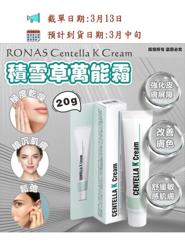 韓國 RONAS Centella K Cream 積雪草K萬能霜 20g