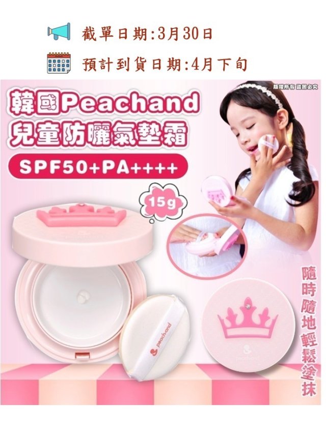 韓國🇰🇷Peachand兒童防曬氣墊霜15g SPF50+ PA++++ (更新版)