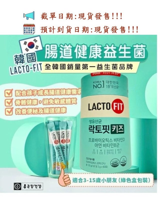 韓國鍾根堂Lacto-Fit 益生菌兒童(4-15歲)綠色罐 (1罐60包) (只限批發會員下單)