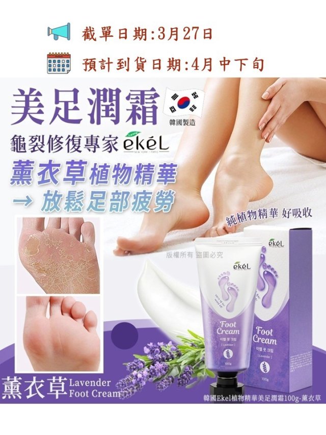 韓國Ekel植物精華美足潤霜100g-薰衣草 (3支/套)