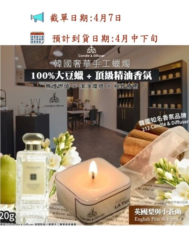 韓國 212 Candle & Diffuser 英國梨與小蒼蘭手工奢華香氛蠟燭 20g(2件/套)