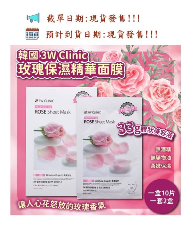 韓國 3W Clinic 玫瑰保濕精華面膜(1套2盒)