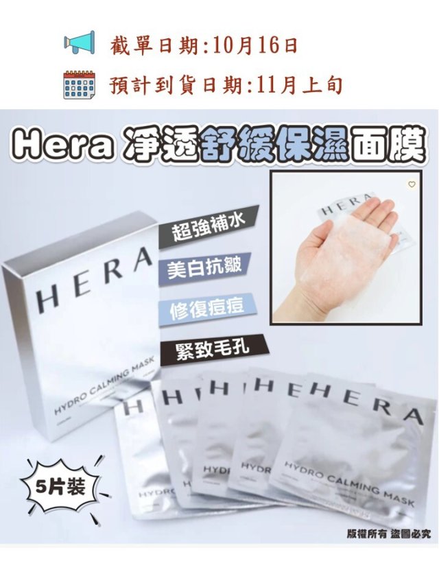 韓國國民品牌Hera 淨透舒緩保濕面膜 5片裝