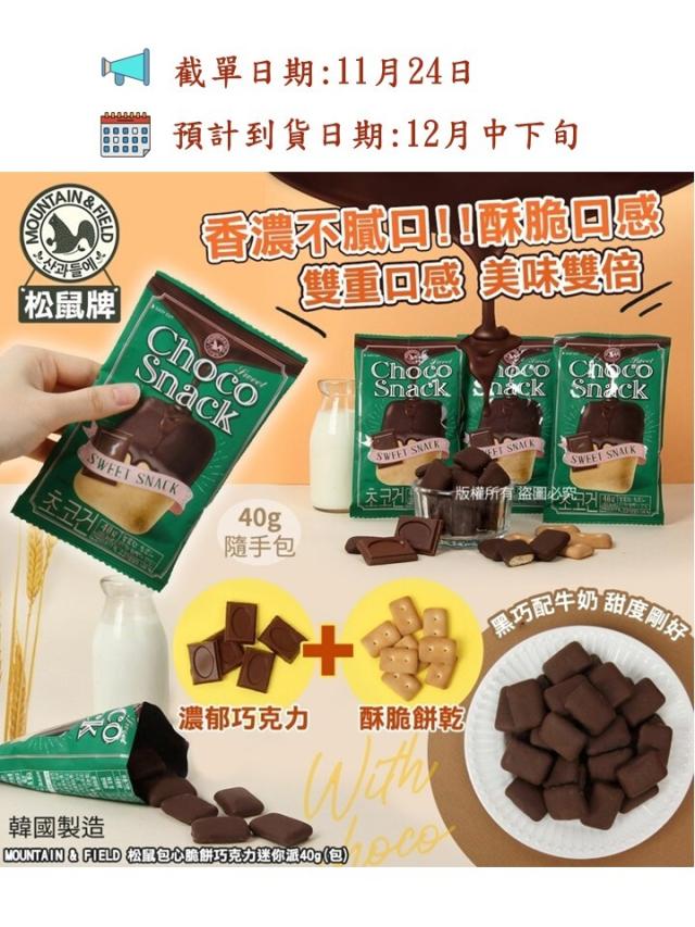 韓國製造MOUNTAIN & FIELD 松鼠包心脆餅巧克力迷你派40g(1套5包)