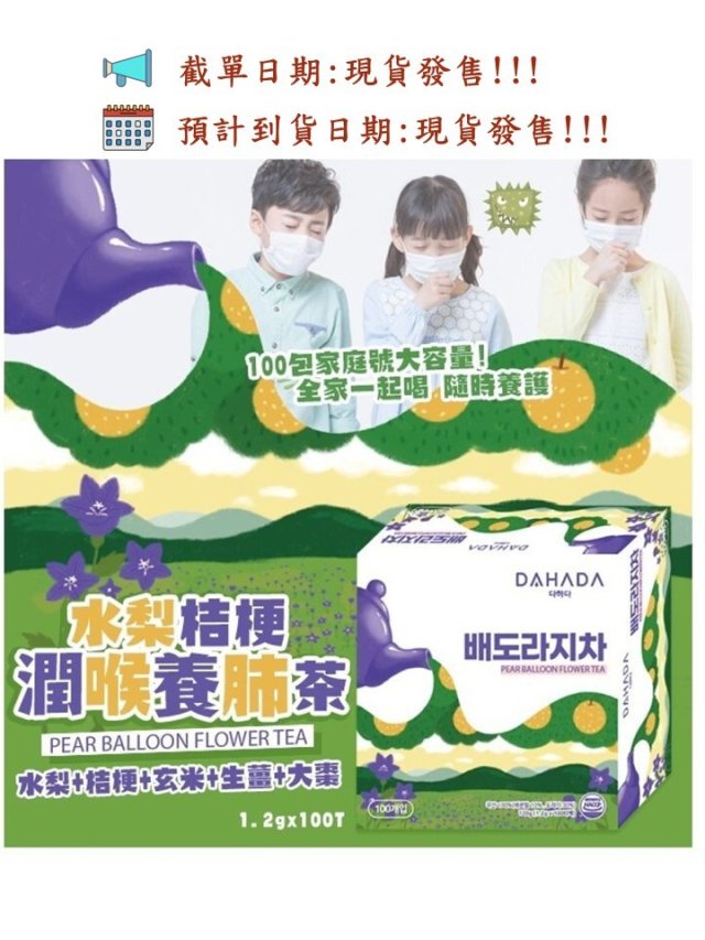 韓國製造 DAHADA 水梨桔梗潤喉茶 (1.2g x 100包)