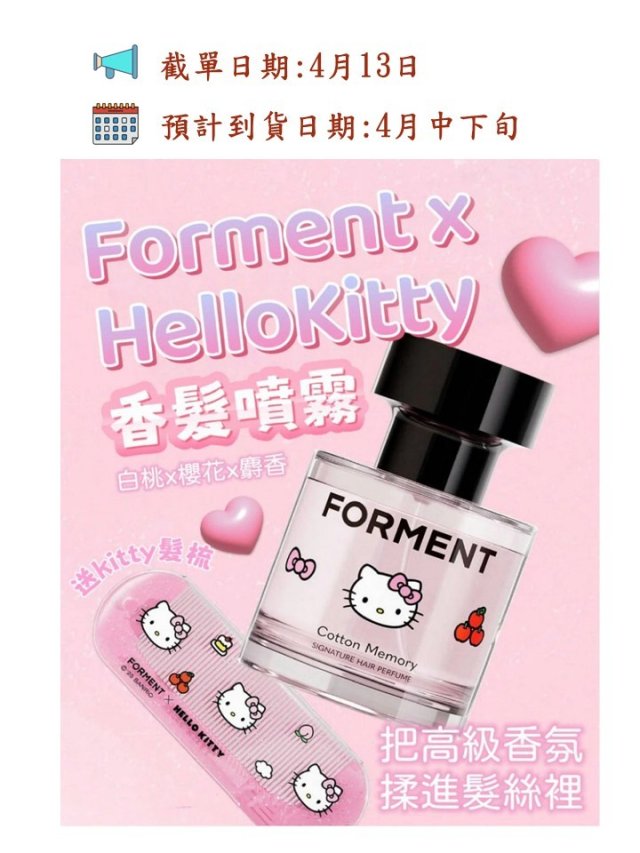 Forment x HelloKitty 香髮噴霧送隨身梳