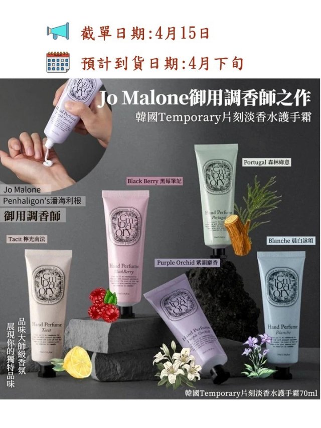 韓國Temporary Hand Perfume 片刻香水護手霜系列 70ml(一套5支)
