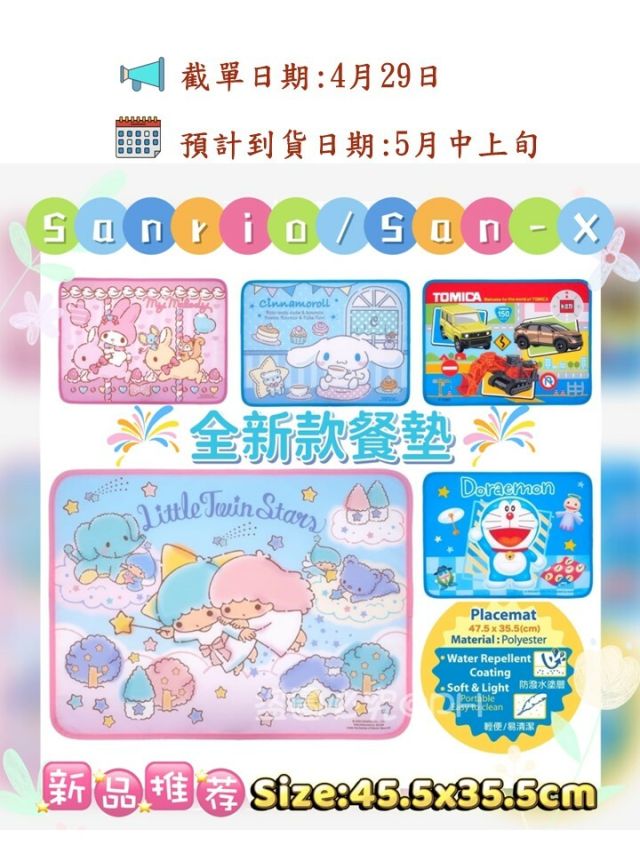 Sanrio / San-X 全新款餐墊