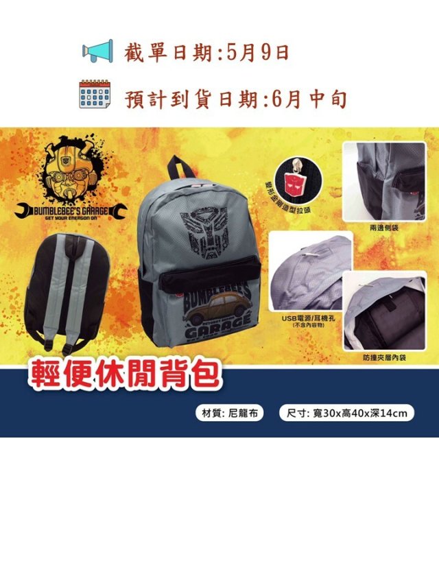 變形金剛大黃蜂休閒背包