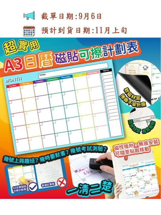 清晰記事 A3日曆磁貼可擦計劃表