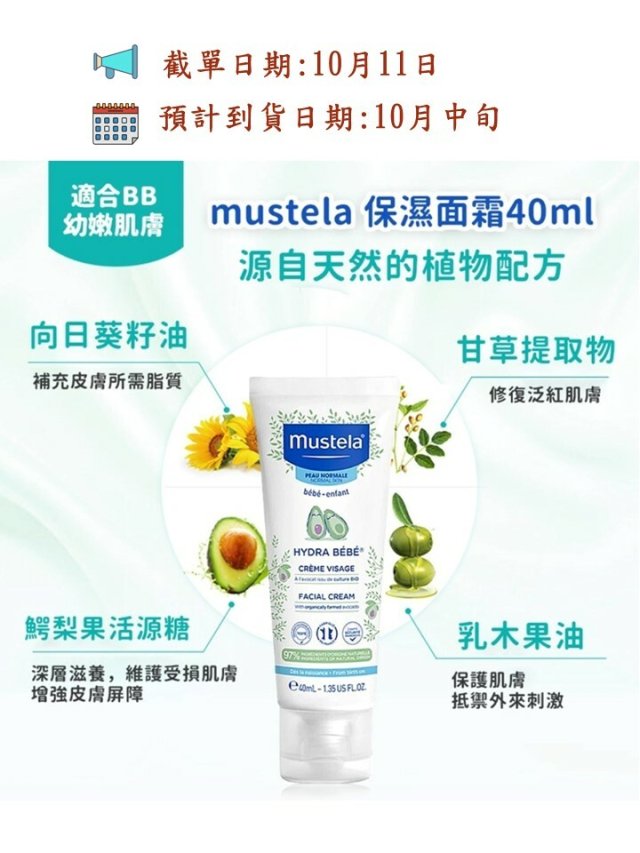 法國mustela 保濕面霜40ml