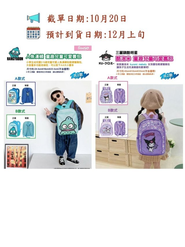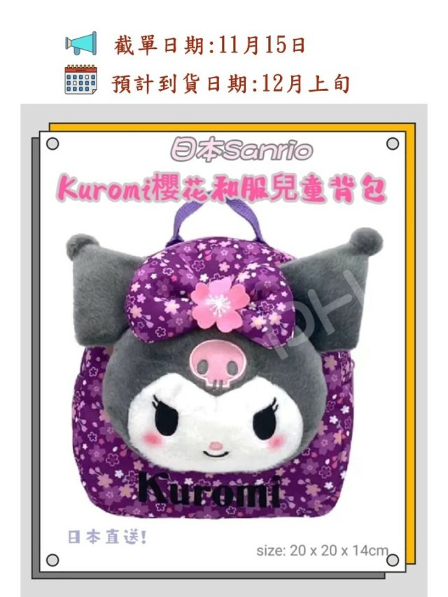 日本 Sanrio Kuromi櫻花和服兒童背包